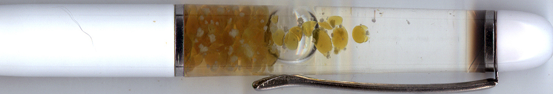 (Pen 2664, Drawer 70) A bit of a mystery pen. The clip says ‘Hong Kong’ and the tip is slightly elongated, however, in all other respects, it would appear to be an Eskesen (age, clear stopper, speed of float)